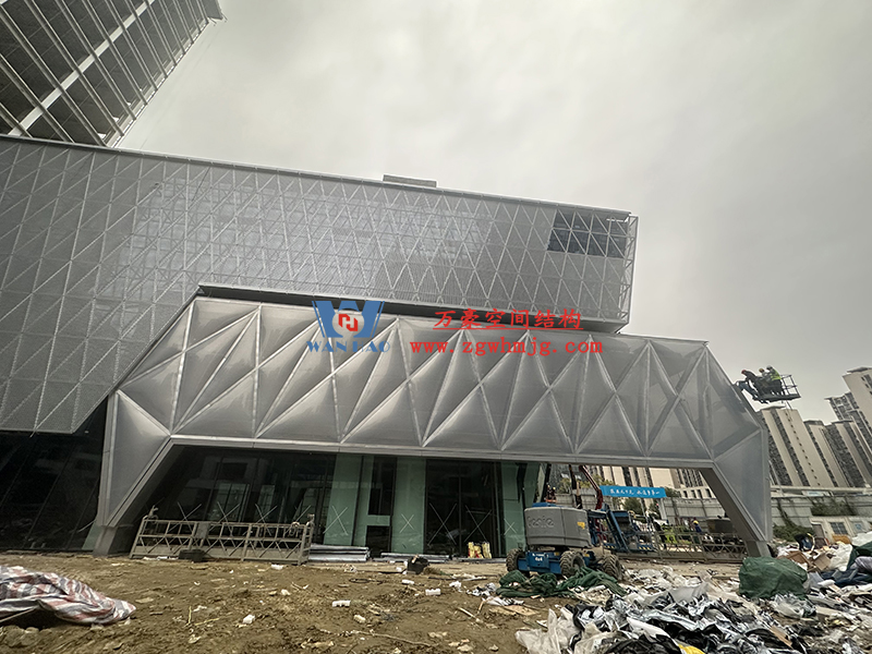 中建錦源匯廣場10-3#樓膜結(jié)構(gòu)工程位于四川省成都市高新區(qū)應(yīng)龍南一路與觀東二街交匯處,該項(xiàng)目ETFE膜結(jié)構(gòu)展開面積700平米,PTFE膜結(jié)構(gòu)展開面積700平米。由寧波萬豪空間結(jié)構(gòu)工程有限公司承建