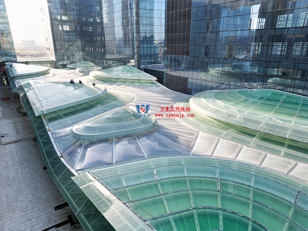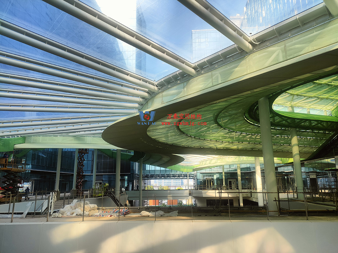 博多森谷項(xiàng)目中庭鋼膜結(jié)構(gòu)工程位于余杭區(qū)良渚板塊,地處杭州城北,良渚未來(lái)核心區(qū),城西科創(chuàng)大走廊輻射圈。該項(xiàng)目用鋼量約689噸,ETFE+網(wǎng)格織物膜展開面積12000平方米。