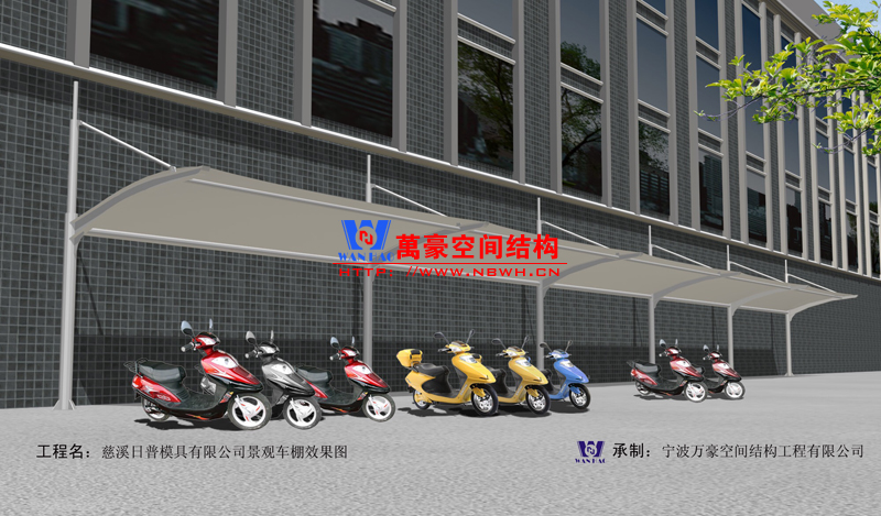 慈溪日照模具有限公司膜結(jié)構(gòu)電瓶車棚效果圖