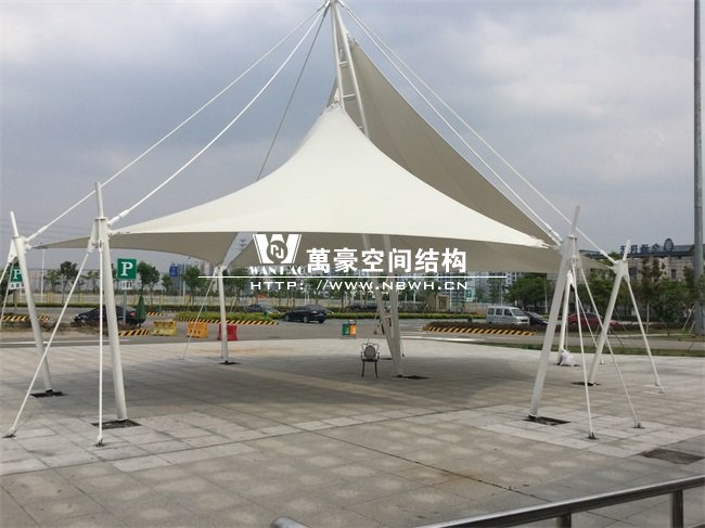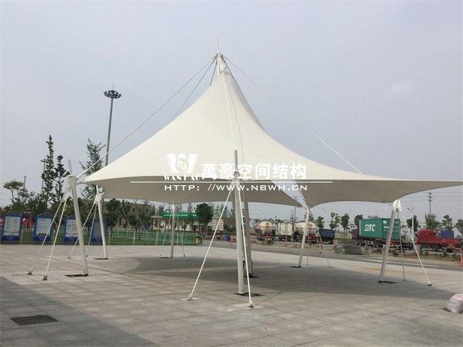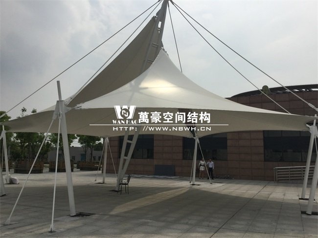 杭州灣跨海大橋南岸服務區(qū)景觀棚項目 興化五得利集團 海寧龍渡湖景觀遮陽膜結構