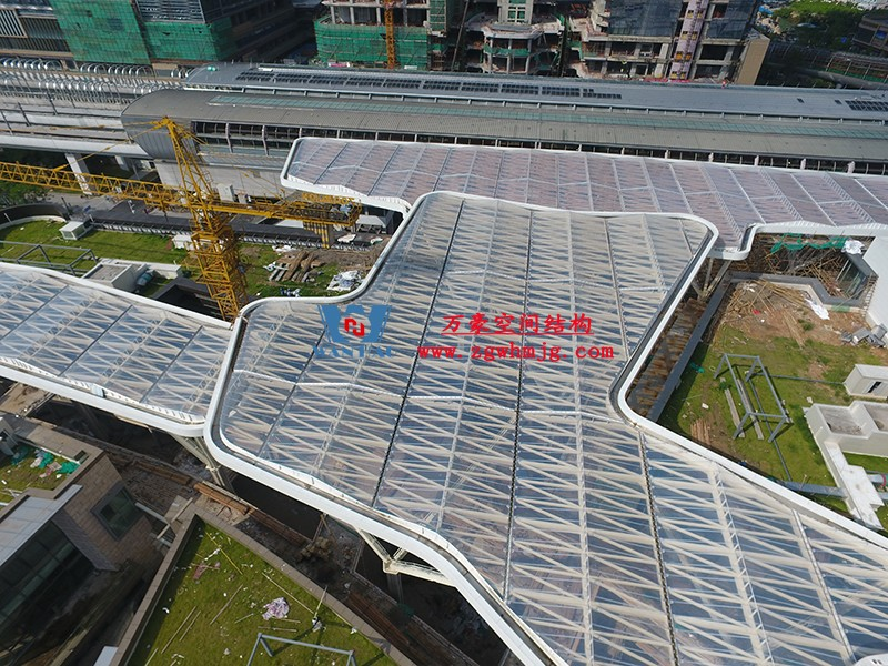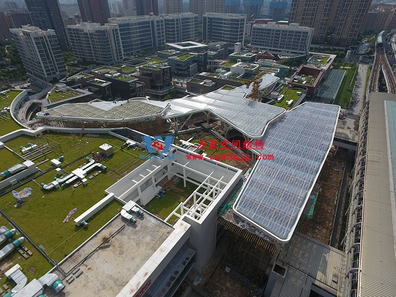深圳龍華地鐵站ETFE天幕項目由我公司負(fù)責(zé)設(shè)計及承建,項目由4個出入口單體組成,ETFE展開面積9000平米,二次鋼結(jié)構(gòu)120噸,結(jié)構(gòu)落柱采用目前最流行的樹形節(jié)點支撐,在結(jié)構(gòu)安全的同時更具層次感。同時該項目也完美突出了ETFE膜材高透光、高自潔性及耐高溫的優(yōu)點。