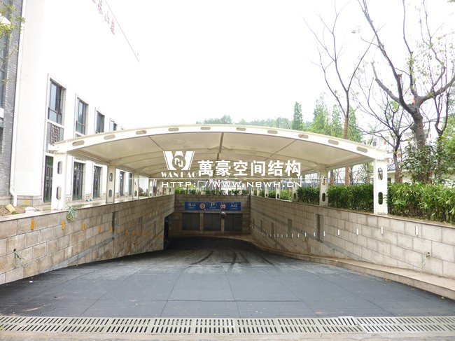 陽(yáng)明溫泉山莊車庫(kù)出入口膜結(jié)構(gòu)位于浙江省寧波余姚市陸埠鎮(zhèn)陽(yáng)明溫泉山莊內(nèi)。山莊總建筑面積6.8萬(wàn)平方米,其建筑群由酒店主樓、別墅、健診中心、室內(nèi)外溫泉區(qū)等區(qū)域組成,集溫泉度假、商務(wù)會(huì)議、高端宴席三大主題。地下車庫(kù)出入口膜結(jié)構(gòu)以其獨(dú)特的造型和良好的性能,與陽(yáng)明溫泉山莊顯得十分搭配,為其增加一份特有的色彩。