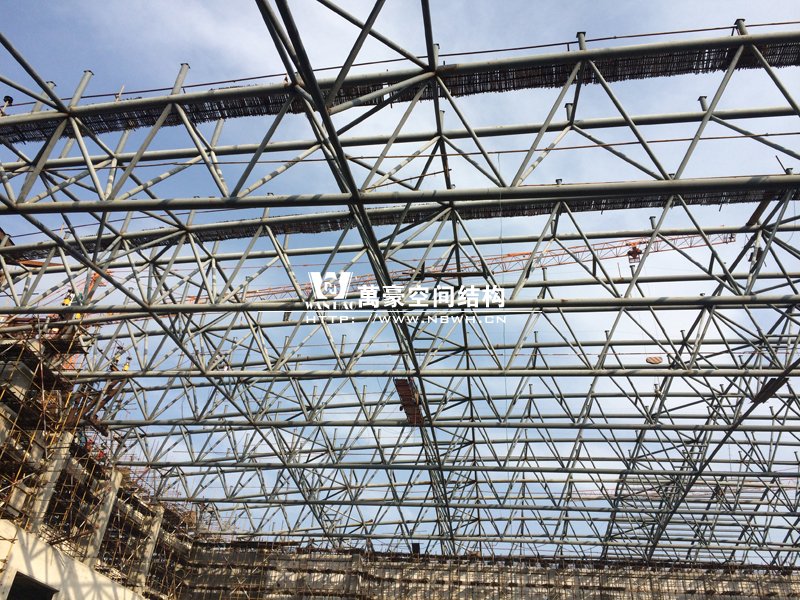 體育館項目鋼結(jié)構(gòu)現(xiàn)場施工中,本項目的主體結(jié)構(gòu)為三角管桁架結(jié)構(gòu),本公司設(shè)計部先進(jìn)行設(shè)計,然后在公司工廠的鋼結(jié)構(gòu)車間進(jìn)行加工,再運送到項目現(xiàn)場進(jìn)行吊裝。