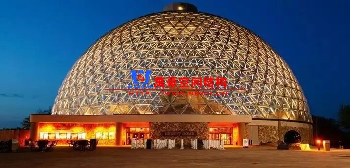 原理看不懂沒關(guān)系,直接看案例。1967年富勒就將這一設(shè)計(jì)思想應(yīng)用于蒙特利爾國際博覽會(huì)美國館的設(shè)計(jì)上,場(chǎng)館是一3/4球形建筑,直徑為76米,外表面覆蓋著透明的亞克力板。這座展館成為美國先進(jìn)科技的象征,當(dāng)年可謂萬眾矚目。