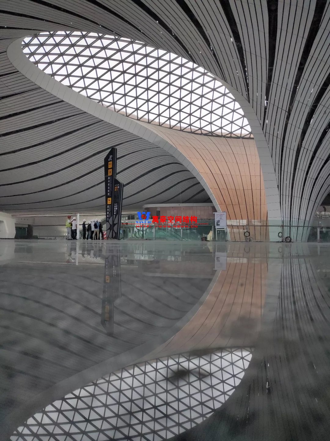鋁合金結(jié)構(gòu)網(wǎng)殼經(jīng)典案例也有很多,其中近兩年被大家熟知的有牛首山大小穹頂和北京新機(jī)場(chǎng)天窗。鋁構(gòu)件的尺度都很小,從通透性上來說,效果比普通鋼網(wǎng)殼要好。對(duì)于本項(xiàng)目要填滿的圓圈,也不失為一種選擇。