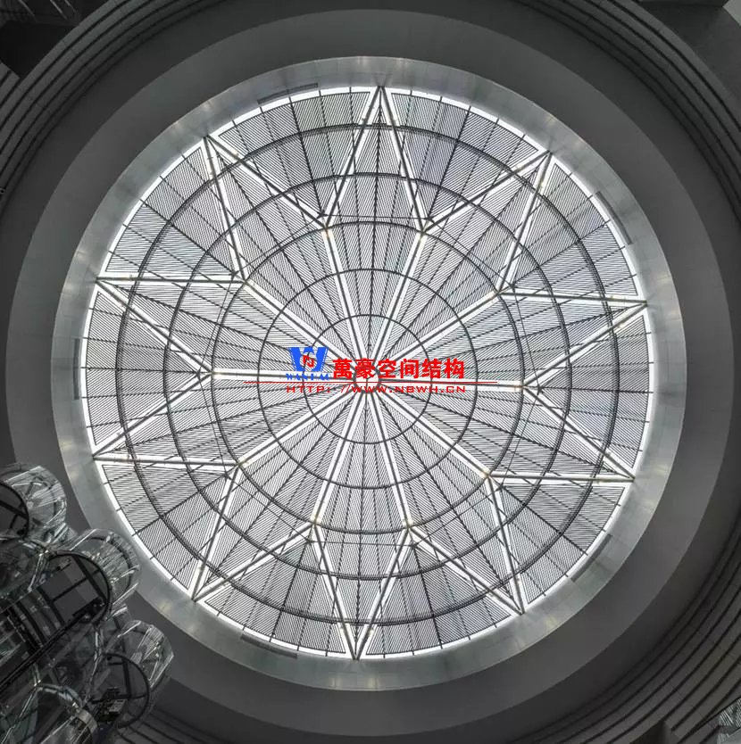 還是用鋼結(jié)構(gòu)比較穩(wěn)妥。要用鋼結(jié)構(gòu)表現(xiàn)天窗的輕盈,網(wǎng)殼是一個(gè)很好的選擇。經(jīng)典的網(wǎng)殼劃分方法有很多,比如肋環(huán)型、聯(lián)方型、施威德勒型、凱威特型等等。其中肋環(huán)型適合中、小跨度;聯(lián)方型抗風(fēng)抗震性能相對(duì)更好,適用與大、中跨度;施威德勒型能承受較大的非對(duì)稱荷載,適用于大、中跨度;凱威特型為均勻的三角形網(wǎng)格,適用于各種跨度。