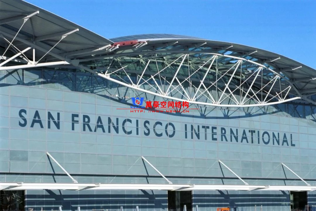可能是因?yàn)殍旒芨叨刃?,用開(kāi)洞的空腹形式更易于實(shí)施,建筑造型優(yōu)美。表皮為不銹鋼板,厚度10mm-30mm,屋面1400平米,425t不銹鋼。