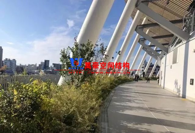 位于場(chǎng)館5層的環(huán)繞式室外走廊被稱為“空之森林”。這里總長(zhǎng)度為850米,距離地面20米,種植了不同種類的植物,錯(cuò)落有致,宛若一座空中花園,與周圍神宮外苑的“大地森林”相呼應(yīng)。場(chǎng)館周圍栽種了約4.7萬棵植物,建筑物本身使用了來自日本47個(gè)都道府縣的木材。