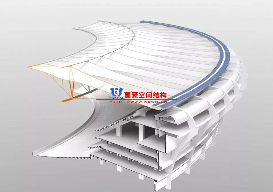 環(huán)索輕型屋蓋結(jié)構(gòu)體系在許多體育場館的屋蓋結(jié)構(gòu)體系中得以不斷衍生發(fā)展,在解決大跨需要的前提下,可以在最大程度上實(shí)現(xiàn)場館內(nèi)無柱空間和幾乎毫無遮擋的體育場內(nèi)部視野。此外,由于大量采用了索、膜等材料,其結(jié)構(gòu)效率,環(huán)保性和經(jīng)濟(jì)性也具備極強(qiáng)的優(yōu)勢,從工程界來推動(dòng)社會(huì)向前進(jìn)步,極具意義。