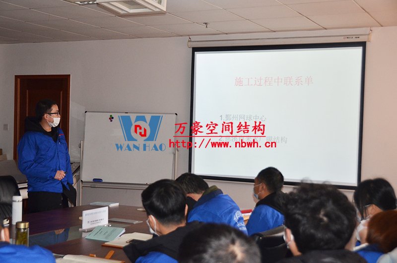 膜結(jié)構(gòu)專業(yè)知識宣講會在萬豪空間結(jié)構(gòu)公司會議室進(jìn)行,培訓(xùn)內(nèi)容由萬豪總經(jīng)理張總及工程部各項(xiàng)目經(jīng)理進(jìn)行主講。