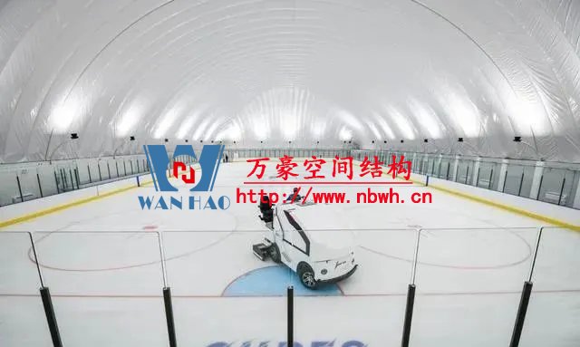 首都體育學(xué)院氣膜滑冰館,是首個(gè)模塊化裝配式的直冷冰場(chǎng)。位于海淀區(qū)北三環(huán)西路11號(hào),總建筑面積7010平方米,為地上一層,局部二層的結(jié)構(gòu)?;^內(nèi)部分為南、北兩個(gè)場(chǎng)館,每個(gè)場(chǎng)館內(nèi)設(shè)有一個(gè)奧林匹克標(biāo)準(zhǔn)級(jí)冰球場(chǎng),制冰總面積3600平方米。