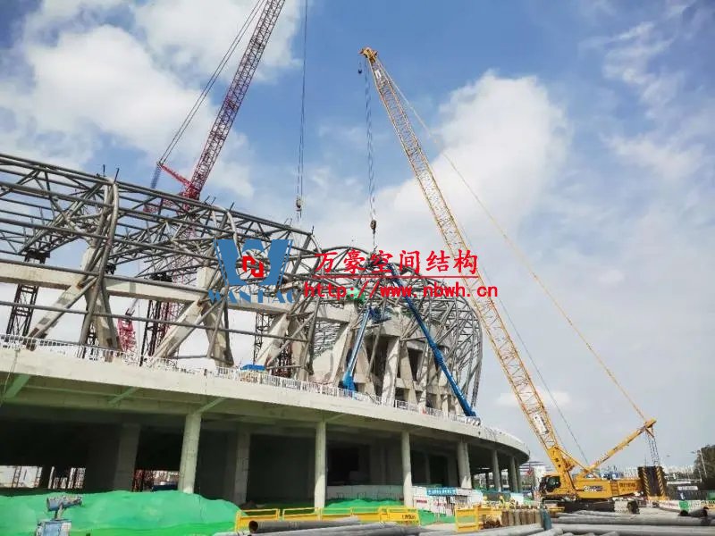 唐山新體育中心項(xiàng)目屋頂主桁架全部吊裝完成