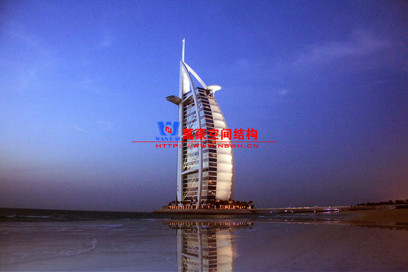 作為理想的膜結(jié)構(gòu)覆蓋材料,膜材要求輕質(zhì)、高強(qiáng)度。中等強(qiáng)度的PVC膜,其厚度僅0.61mm,但它的拉伸強(qiáng)度已達(dá)到鋼材的水平。膜材還對(duì)自然光有反射、吸收和透射能力;它不燃、難燃或阻燃,具有耐久、防火、氣密良好等特性;表面經(jīng)處理(涂覆PVC或PVDF等)的膜材,自身不發(fā)粘,有很好的自潔性能。在環(huán)保方面,目前開發(fā)使用的ETFE膜材,已經(jīng)能達(dá)到100%回收再利用。膜材滿足如此多的苛刻條件,加上科學(xué)合理的鋼結(jié)構(gòu)支撐,膜結(jié)構(gòu)能變成各種藝術(shù)造型也就不足為奇了。