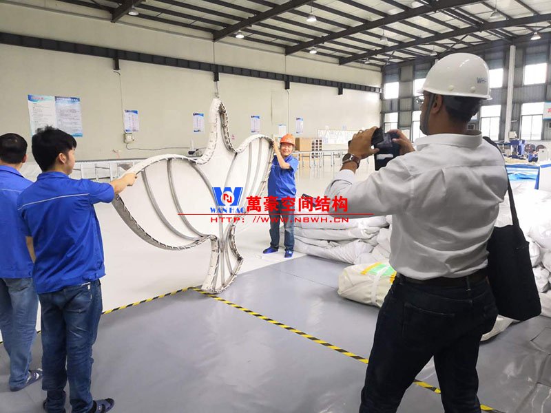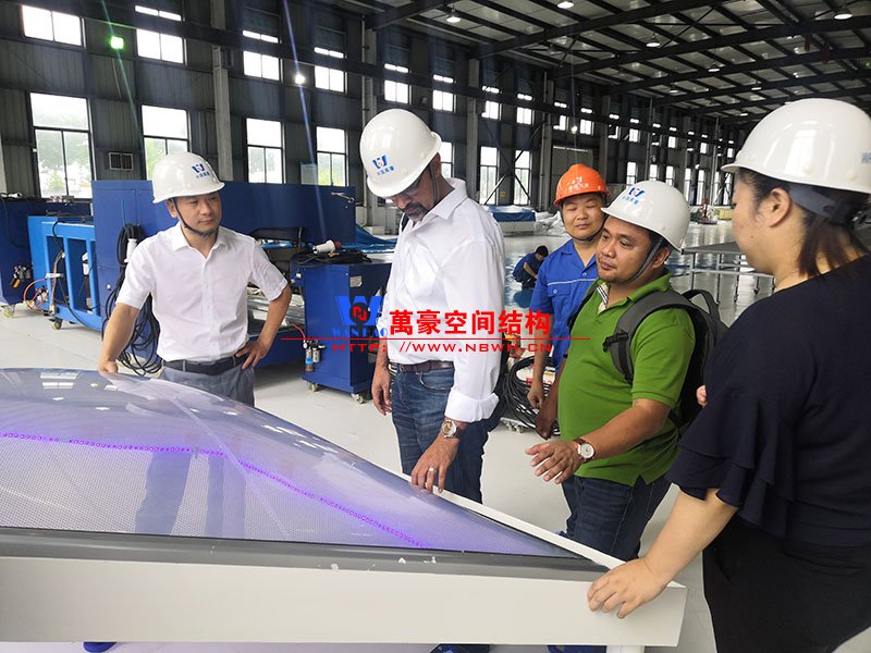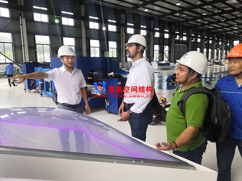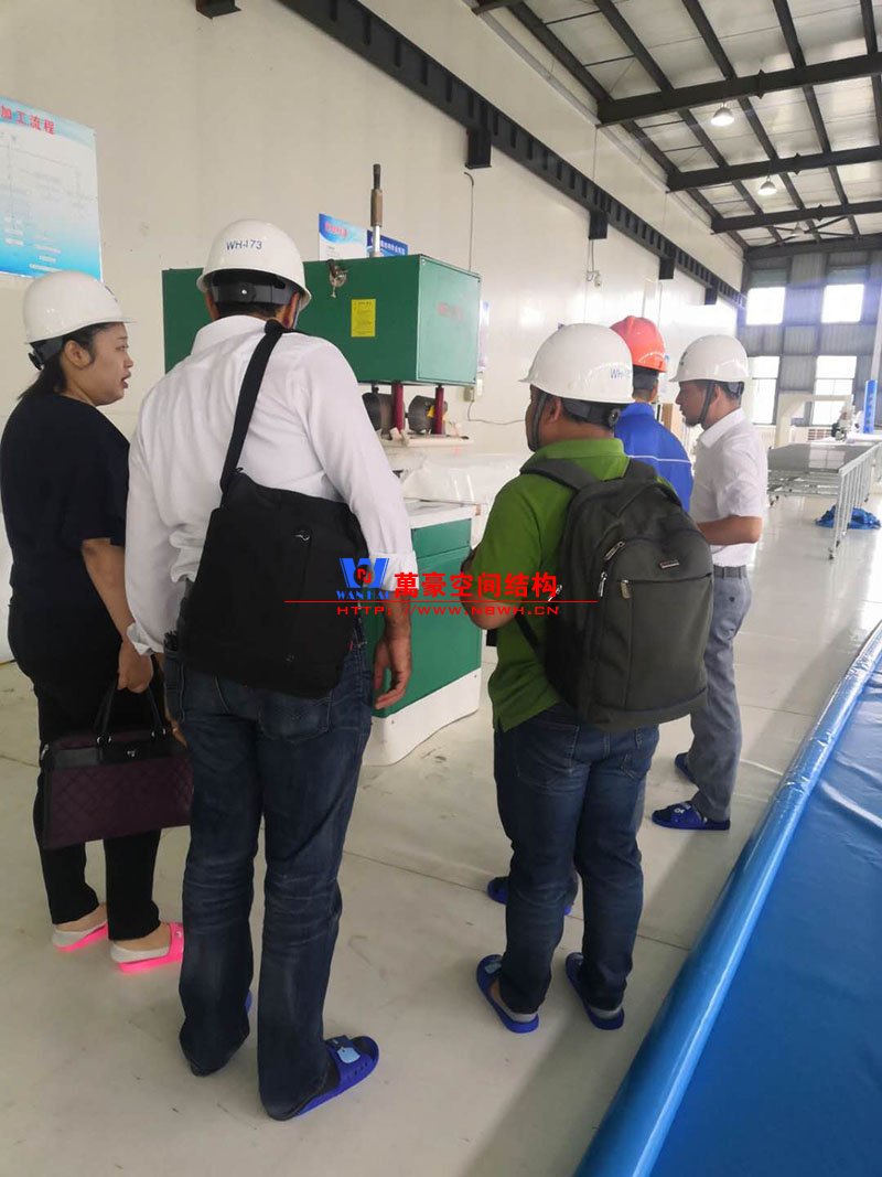 然后,我們陪同迪拜客戶參觀了公司膜結(jié)構(gòu)生產(chǎn)車間。