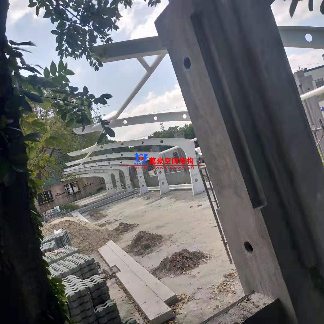 目前鋼結(jié)構(gòu)安裝已經(jīng)完成,膜結(jié)構(gòu)準(zhǔn)備開始安裝。