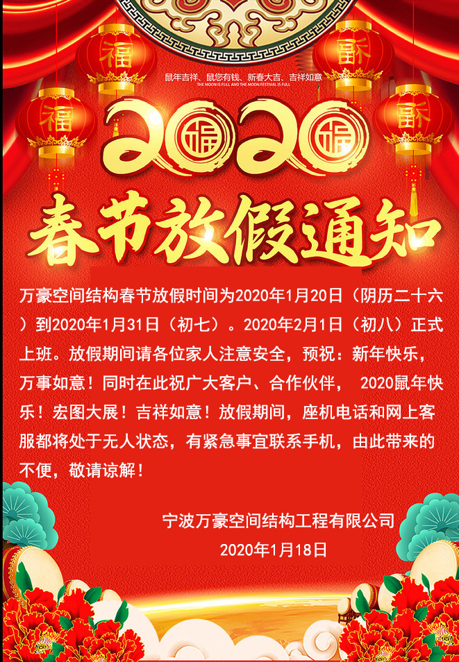 2020春節(jié)放假通知