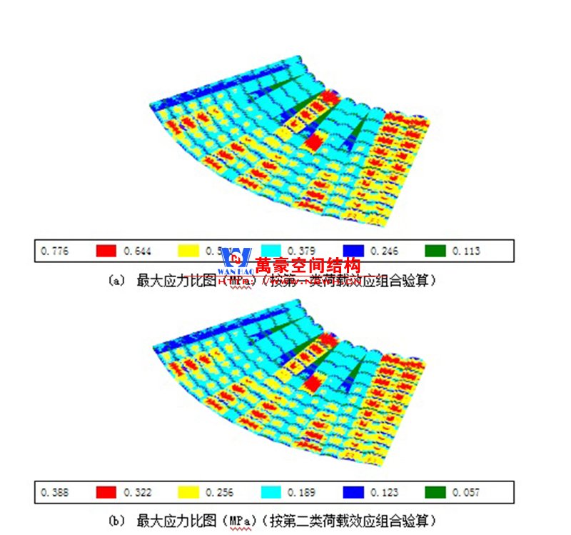 膜材強度設計值按第一類荷載效應組合驗算取 20.0MPa,按第二類荷載效應組合驗算取 40.0MPa。