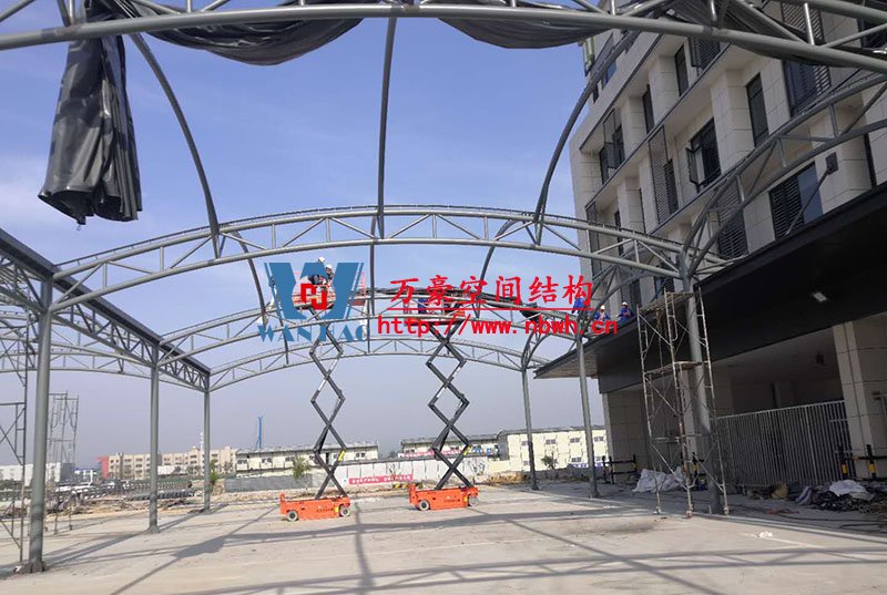 奉化方橋農(nóng)副鋼結(jié)構(gòu)雨棚工程位于浙江省寧波市奉化市內(nèi),此工程用鋼量100噸,膜結(jié)構(gòu)展開面積3500平米,由寧波萬(wàn)豪空間結(jié)構(gòu)工程有限公司承建。