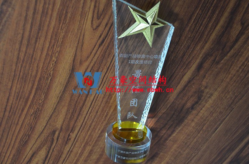 由于萬豪在奉化方橋農(nóng)副鋼膜結(jié)構(gòu)雨棚工程施工中,項(xiàng)目組織機(jī)構(gòu)完整,施工管理到位,安全文明生產(chǎn),并完美的完成工程,所以得到業(yè)主的一致好評(píng),并獲得最佳團(tuán)隊(duì)獎(jiǎng)的榮譽(yù)。