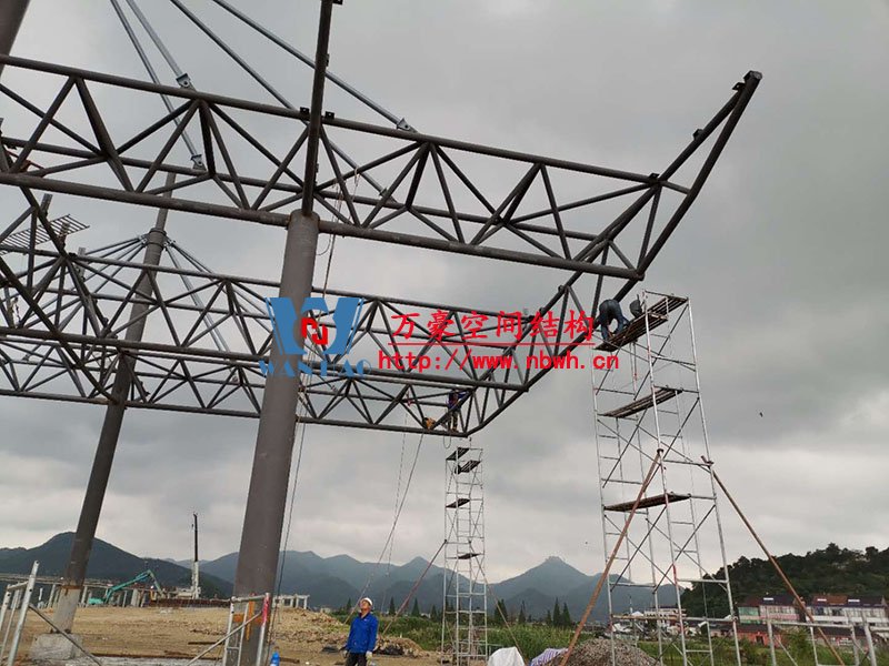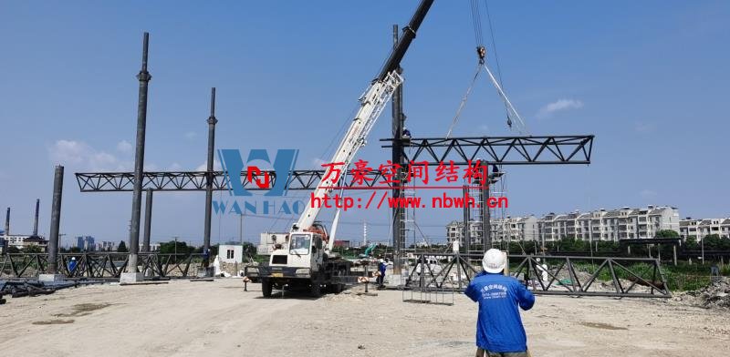 紹興福全高速收費(fèi)站頂棚工程用鋼量60噸,由寧波萬(wàn)豪空間結(jié)構(gòu)工程有限公司加工和安裝。 目前,項(xiàng)目鋼結(jié)構(gòu)安裝完成。 期待整個(gè)工程的完工,來(lái)領(lǐng)略它別致的風(fēng)采。