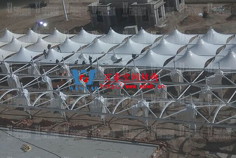 茶卡景區(qū)(二期)膜結(jié)構(gòu)工程A1區(qū)膜結(jié)構(gòu)安裝完成