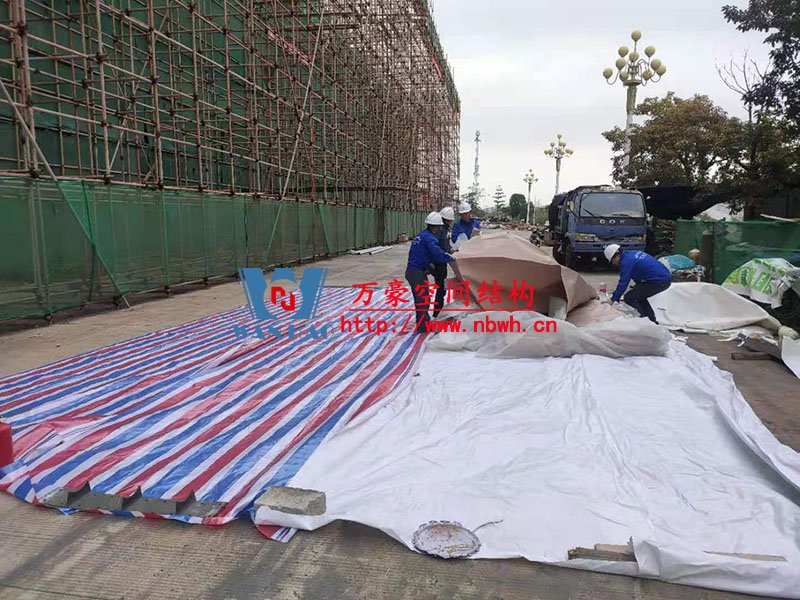 汕尾市體育中心(一期)工程田徑場膜結(jié)構(gòu)項(xiàng)目位于廣東省汕尾市,PTFE膜結(jié)構(gòu)展開面積5000平米,由寧波萬豪空間結(jié)構(gòu)工程有限公司承建。 目前,該項(xiàng)目的鋼結(jié)構(gòu)工程部分已完成,進(jìn)入膜結(jié)構(gòu)安裝階段。 期待整個(gè)工程的完工,來領(lǐng)略它別致的風(fēng)采。