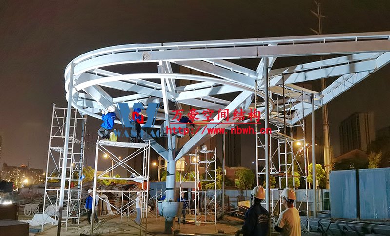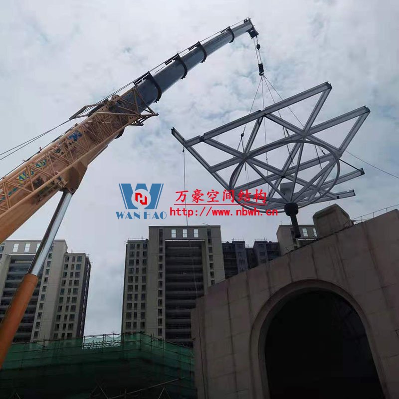 臺(tái)州大板橋ETFE氣枕天幕項(xiàng)目鋼結(jié)構(gòu)開(kāi)始吊裝