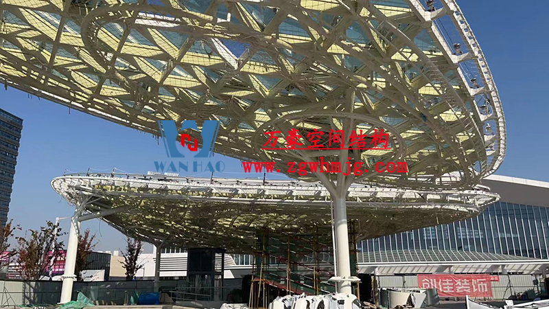 滬通鐵路張家港站地方配套工程-站前西側(cè)旅客集散區(qū)蝴蝶造型天幕工程擬建結(jié)構(gòu)為蘇州張家港高鐵站站前廣場(chǎng)蝴蝶造型雙曲面殼體膜結(jié)構(gòu),共分為大、小翅膀四部分。