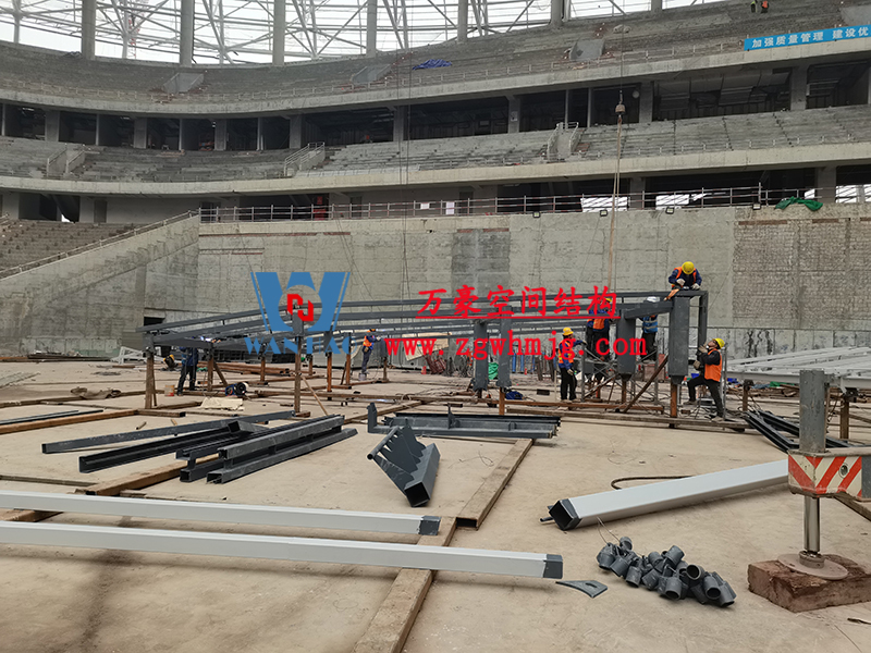 目前,項(xiàng)目屋面鋼結(jié)構(gòu)完成,屋面正在安裝膜結(jié)構(gòu),內(nèi)環(huán)鋼結(jié)構(gòu)施工30%,立面鋼結(jié)構(gòu)完成28%。