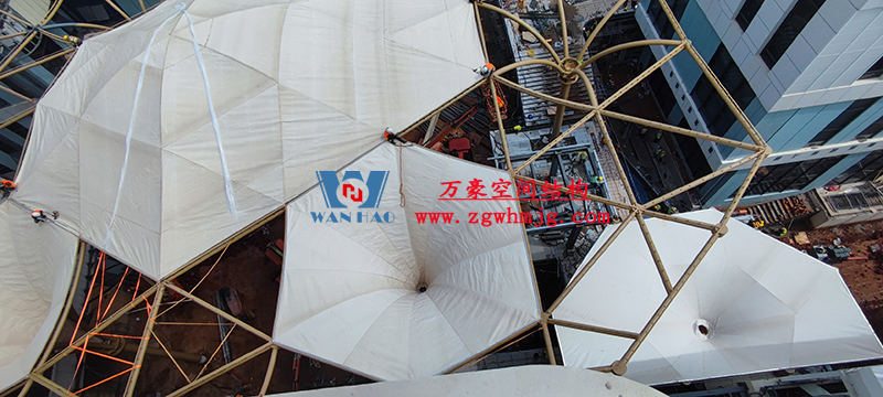 目前,項(xiàng)目膜結(jié)構(gòu)安裝中。