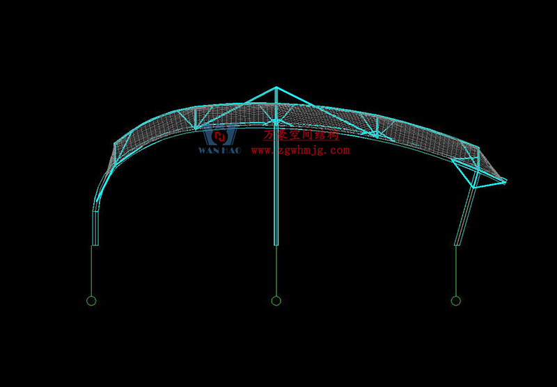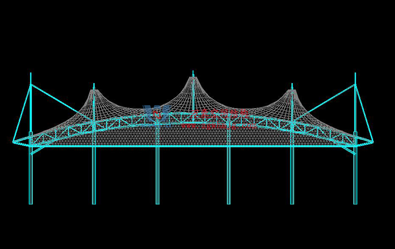 球場(chǎng)采用膜結(jié)構(gòu)形式,可以充分發(fā)揮建筑師的想象力,又體現(xiàn)結(jié)構(gòu)構(gòu)件清晰受力之美。作為一種柔性材料,其在建筑上的造型變化多端,是其它材料所不能比擬的,因此也造就了膜結(jié)構(gòu)多變的特性,充分體現(xiàn)出建筑形體塑造力和輕盈、飄逸的動(dòng)感曲線外觀。