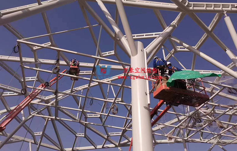 最近項目不斷傳回最新施工進展,目前鋼構(gòu)主體已經(jīng)完成,油漆的涂刷、二次鋼構(gòu)以及排水管道的安裝也已接近尾聲,現(xiàn)在進行最后的收尾工作。樣品膜的試裝也已完結(jié),等待后期整體鋼構(gòu)以及排水管安裝完畢,開始進行膜體的安裝。期待工程的整體完工,讓我們能夠盡早一飽眼福。