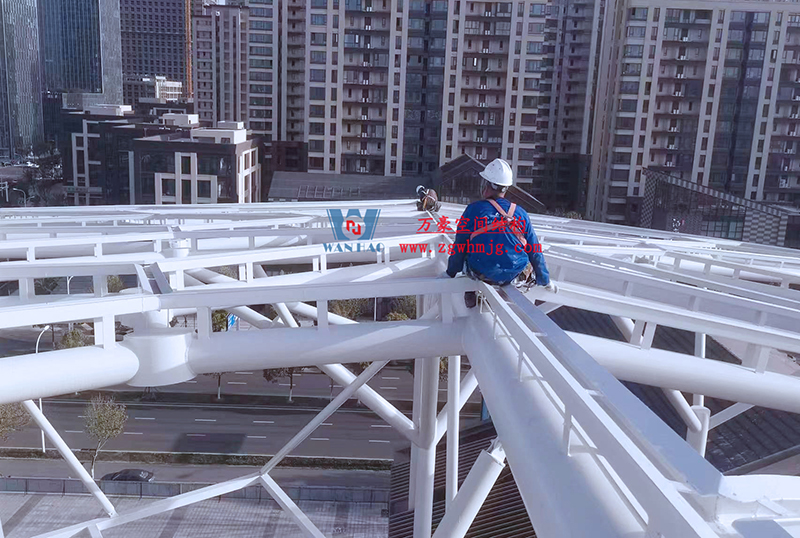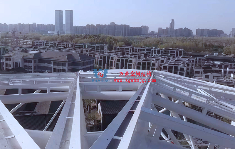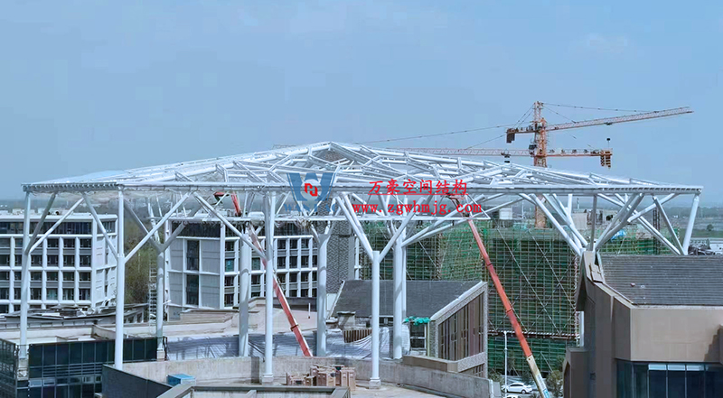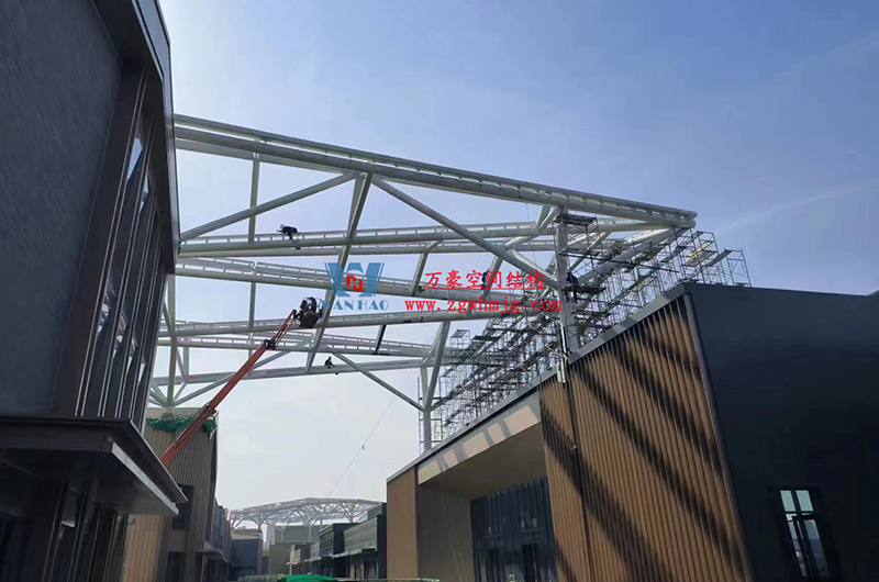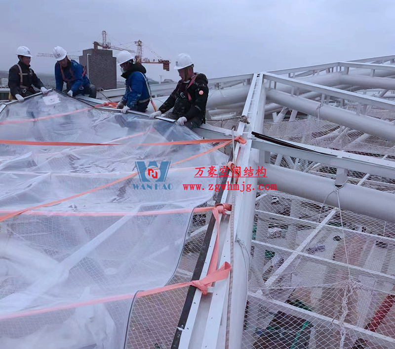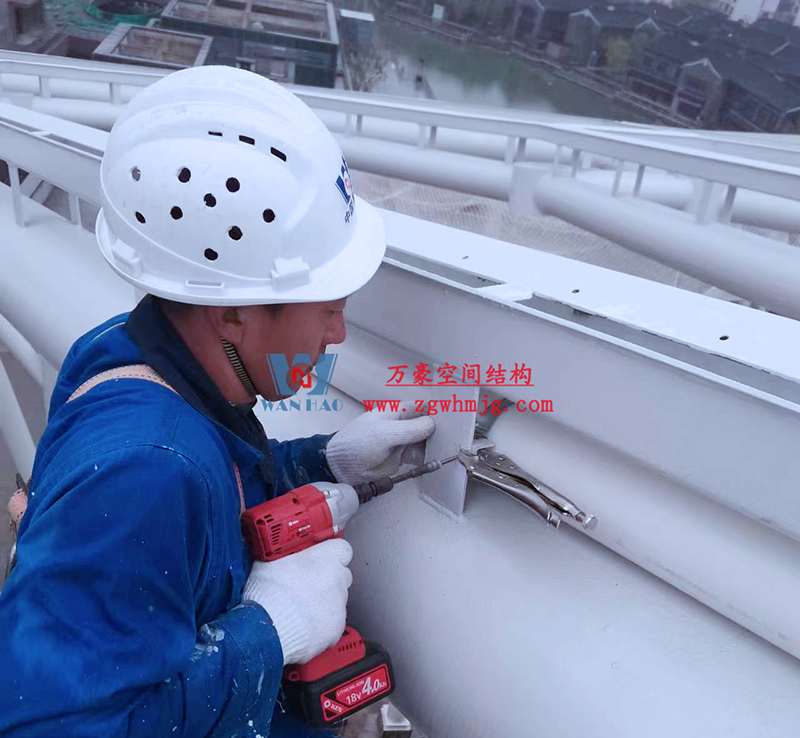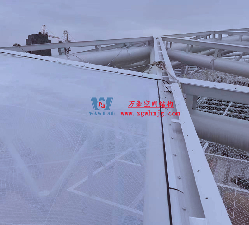 文一塘溪津門天幕鋼結(jié)構(gòu)及ETFE氣枕膜工程由寧波萬豪空間結(jié)構(gòu)工程有限公司承建,該項目用鋼量900噸,膜結(jié)構(gòu)展開面積7000平米。今年以來,萬豪施工團隊緊抓時間節(jié)點,工程進度推進迅速。