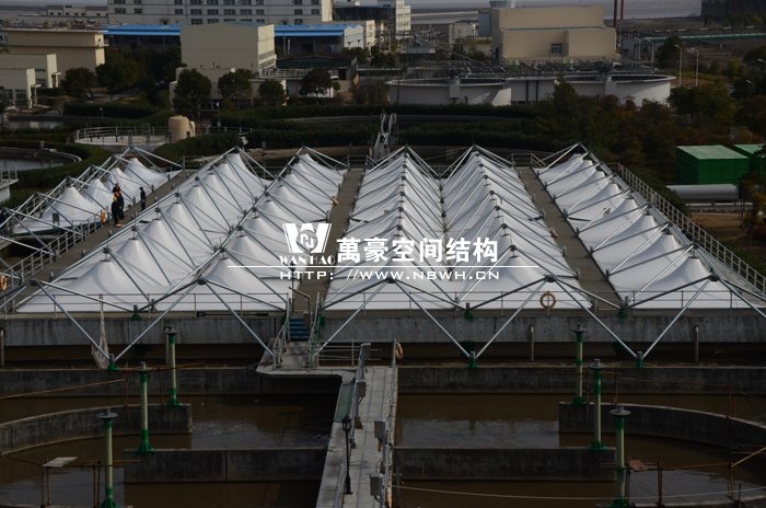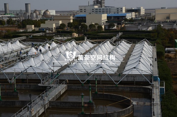 寧波北區(qū)污水處理廠廠址位于鎮(zhèn)海新泓口甬舟高速與化工區(qū)主干道交叉口附近,污水廠一期建設用地15.48公頃,膜結構加蓋面積達一萬多平方米。