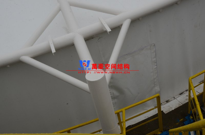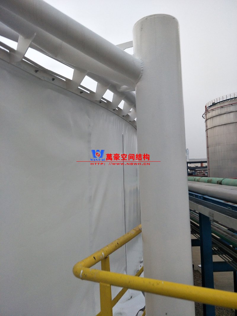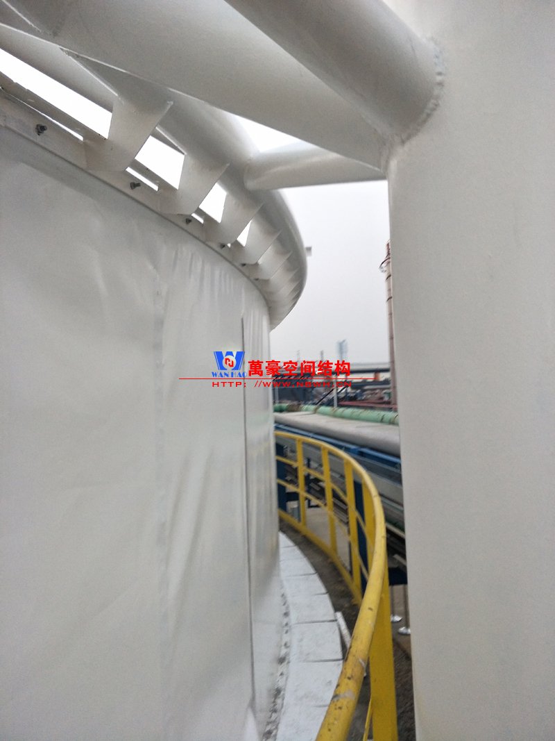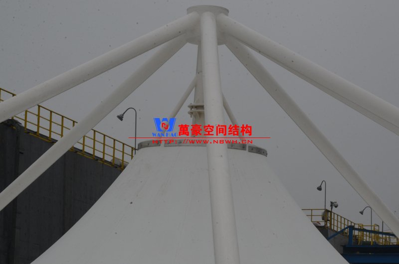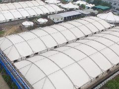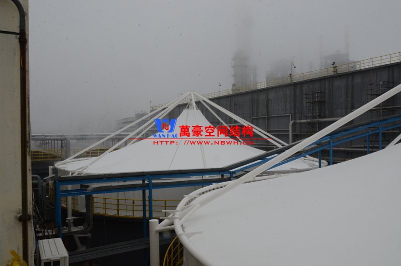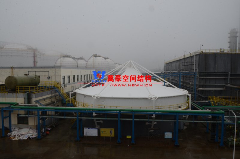 平湖衛(wèi)星石化污水廠膜結(jié)構(gòu)加蓋密封系統(tǒng)工程項(xiàng)目膜結(jié)構(gòu)展開(kāi)面積2000平米,用鋼量35噸,由寧波萬(wàn)豪空間結(jié)構(gòu)工程有限公司承建。